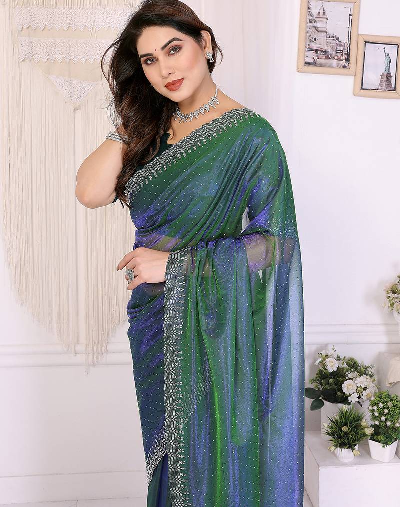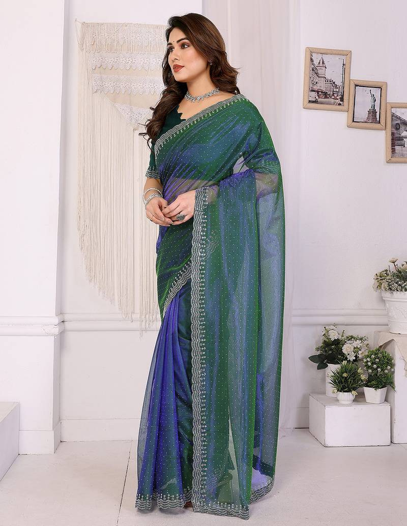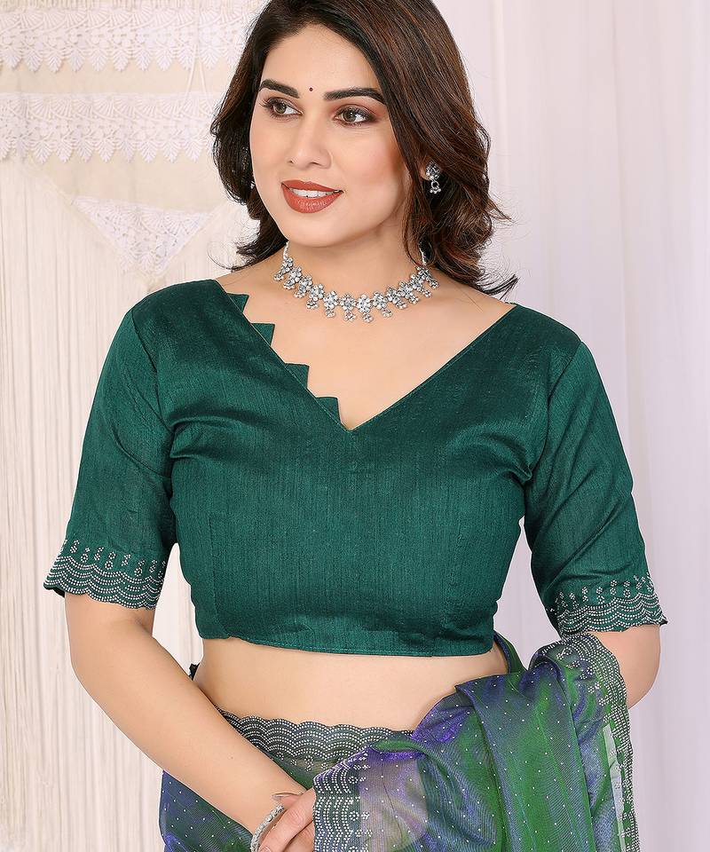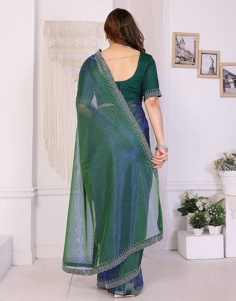 Product Name Green Embellished Net Saree With Diamond Lace Border & Blouse Piece