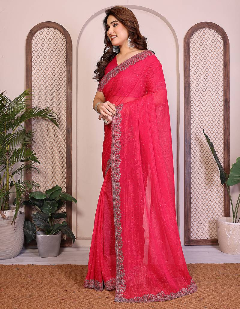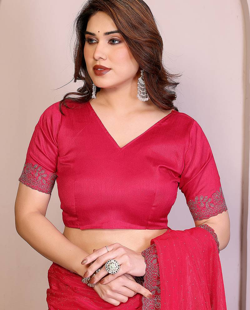 | Product Name | Pink Embellished Net Saree With Diamond Lace Border & Blouse Piece | |