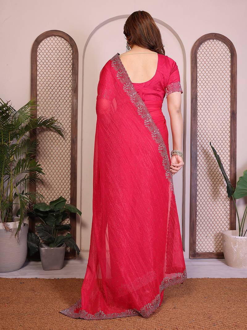 | • | Saree | : | Color- Pink / Fabric- Net |