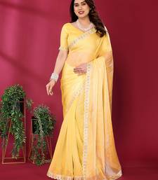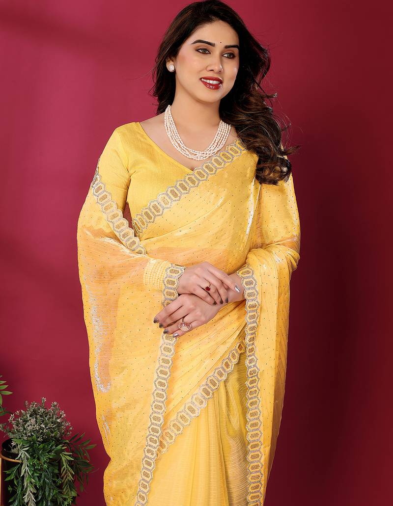 yellow embroidered tissue saree with jimmy choo lace border & blouse piece