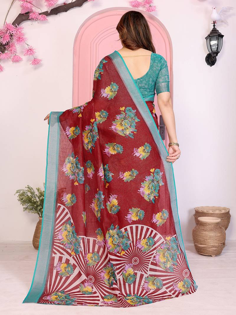 Add A Touch Of Elegance To Your Wardrobe With This Women’s Floral Cotton Silk Saree With Blouse Piece. Crafted From Soft Cotton Silk, This Saree Features A Delicate Floral Print And A Subtle Shimmer That Catches The Light Beautifully. Lightweight And Comfortable, It Drapes Effortlessly, Making It Perfect For Festive Occasions, Casual Gatherings, Or Daytime Celebrations. Comes With A Matching Blouse Piece For A Complete, Coordinated Look.
