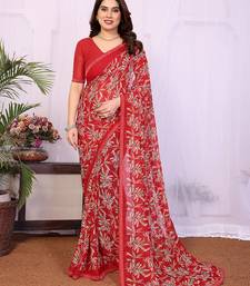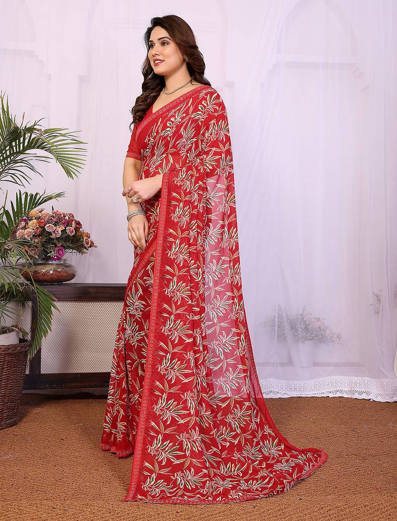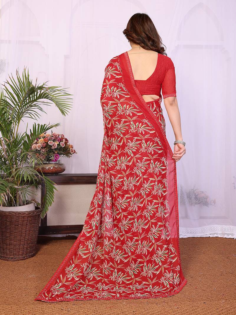 Product Name Red Floral Georgette Saree With Lace Border & Blouse Piece