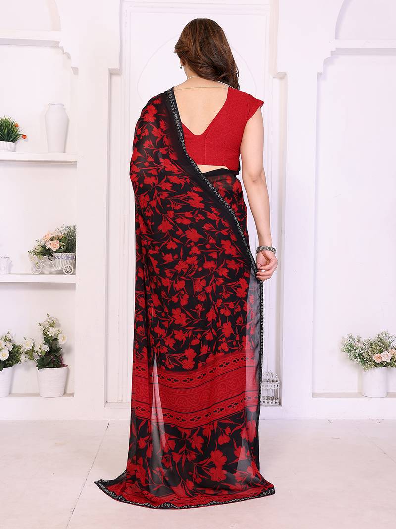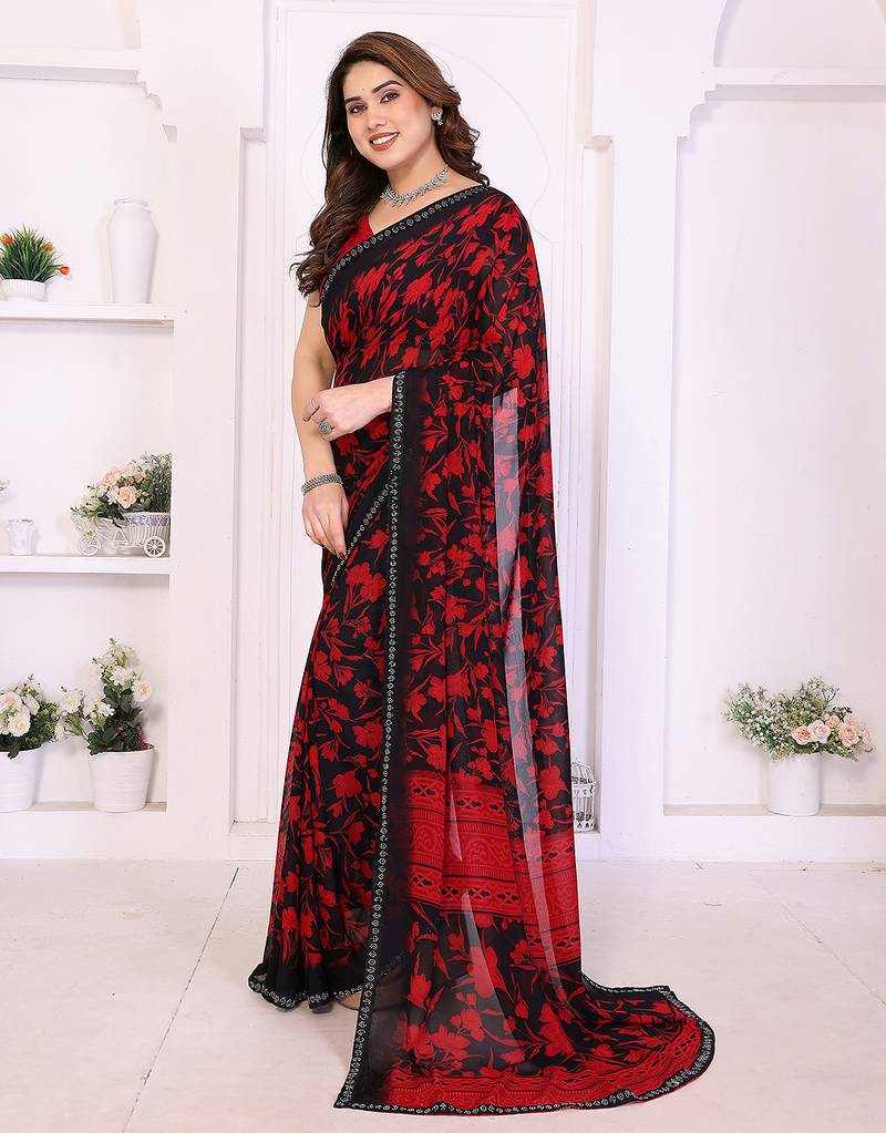 Product Name Red Floral Georgette Saree With Lace Border & Blouse Piece