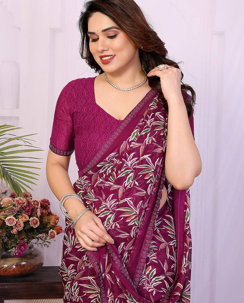 | Product Name | Purple Floral Georgette Saree With Lace Border & Blouse Piece | |