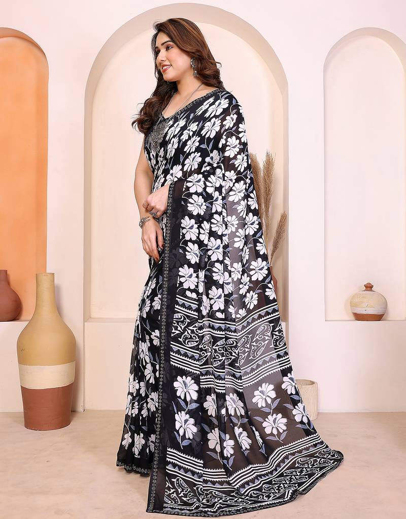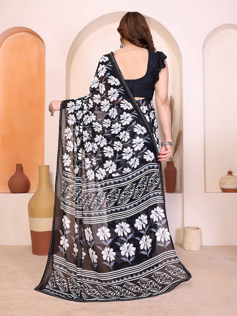 | Product Name | Black Floral Georgette Saree With Lace Border & Blouse Piece | |