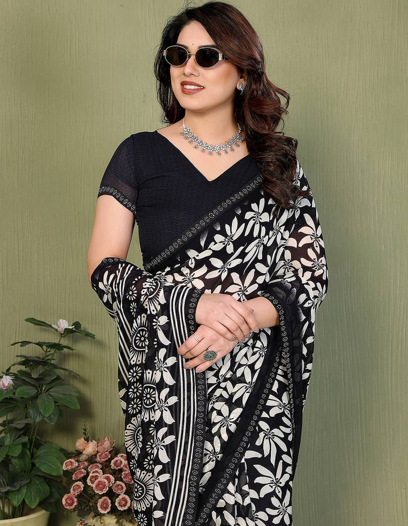 | Product Name | Black Floral Georgette Saree With Lace Border & Blouse Piece | |