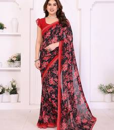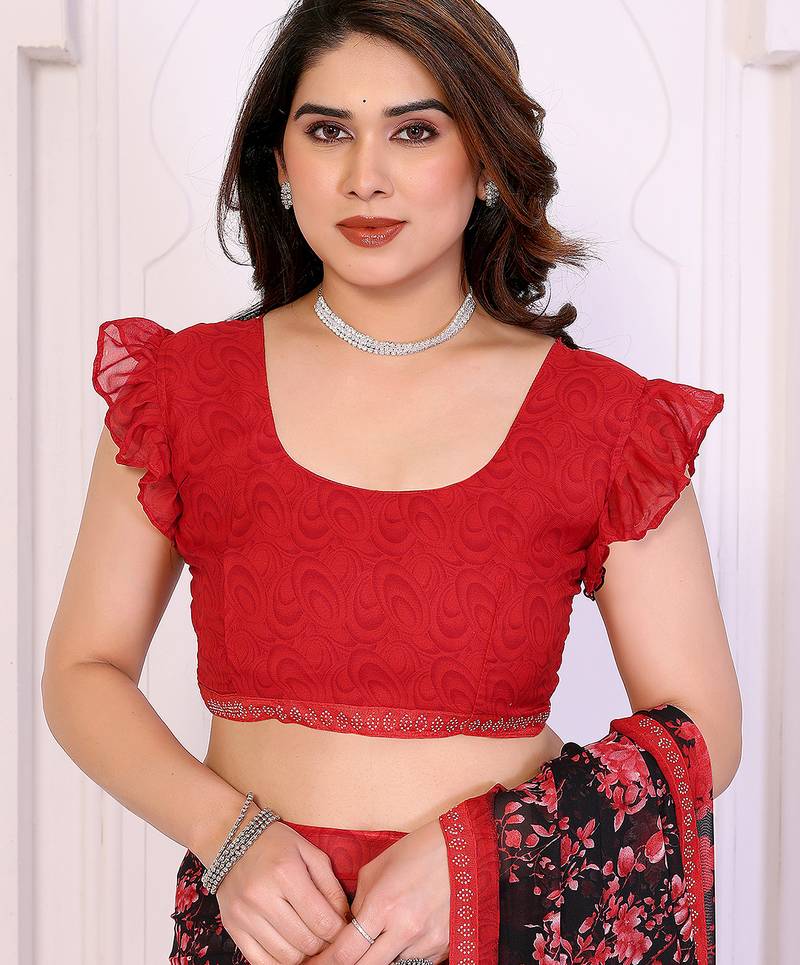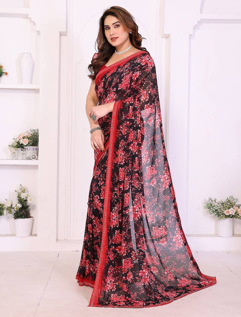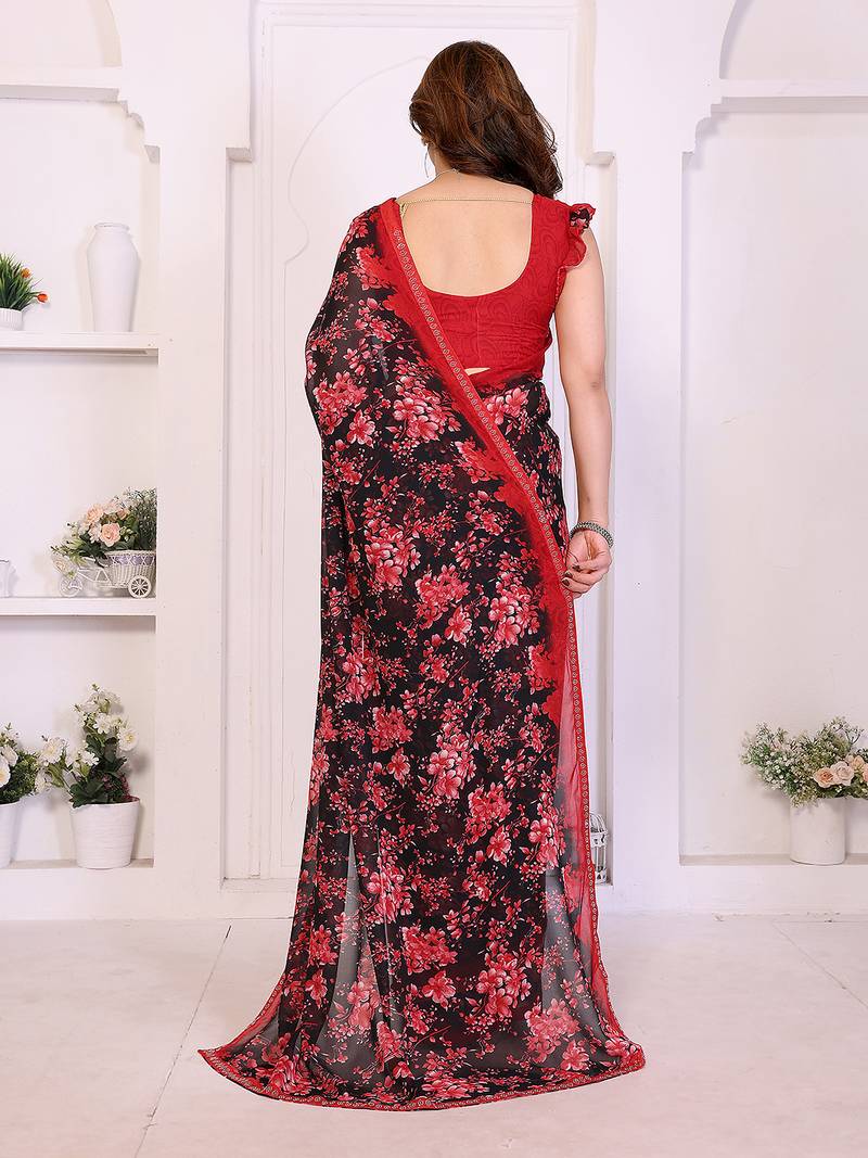 Product Name Red Floral Georgette Saree With Lace Border & Blouse Piece
