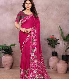 pink floral georgette saree with lace border & blouse piece