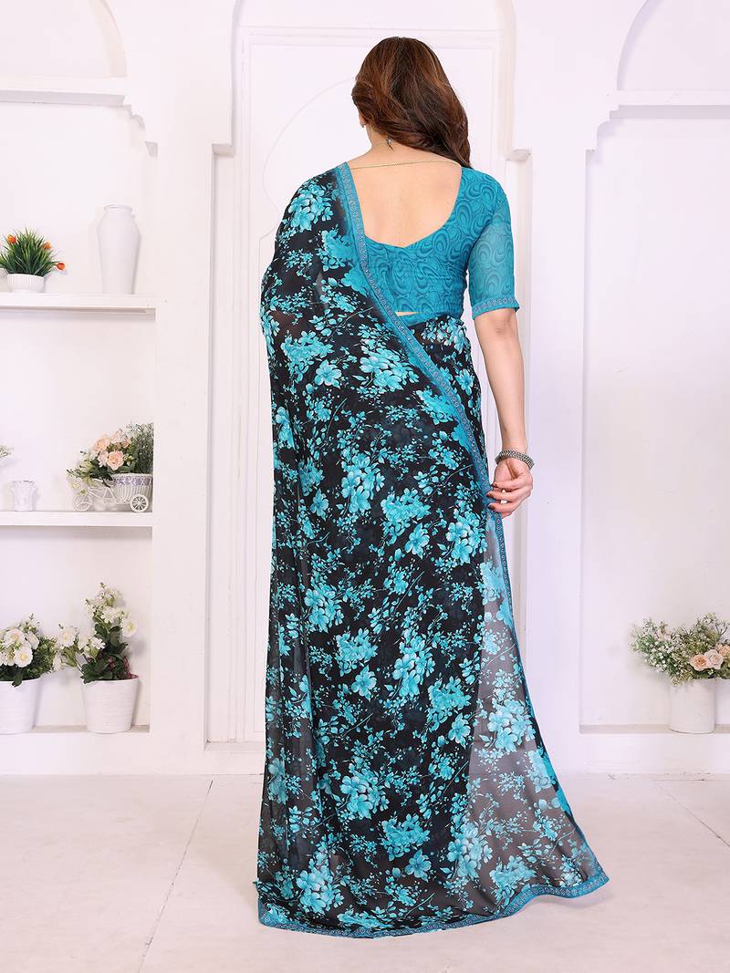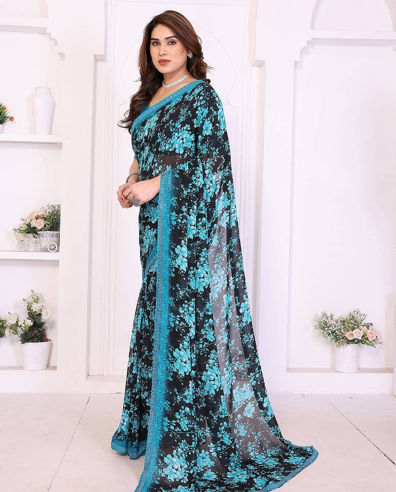 Product Name Blue Floral Georgette Saree With Lace Border & Blouse Piece