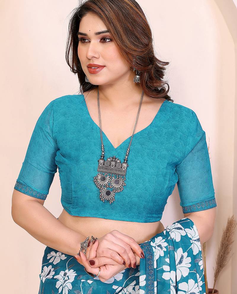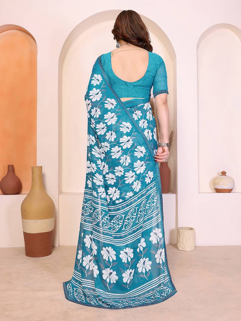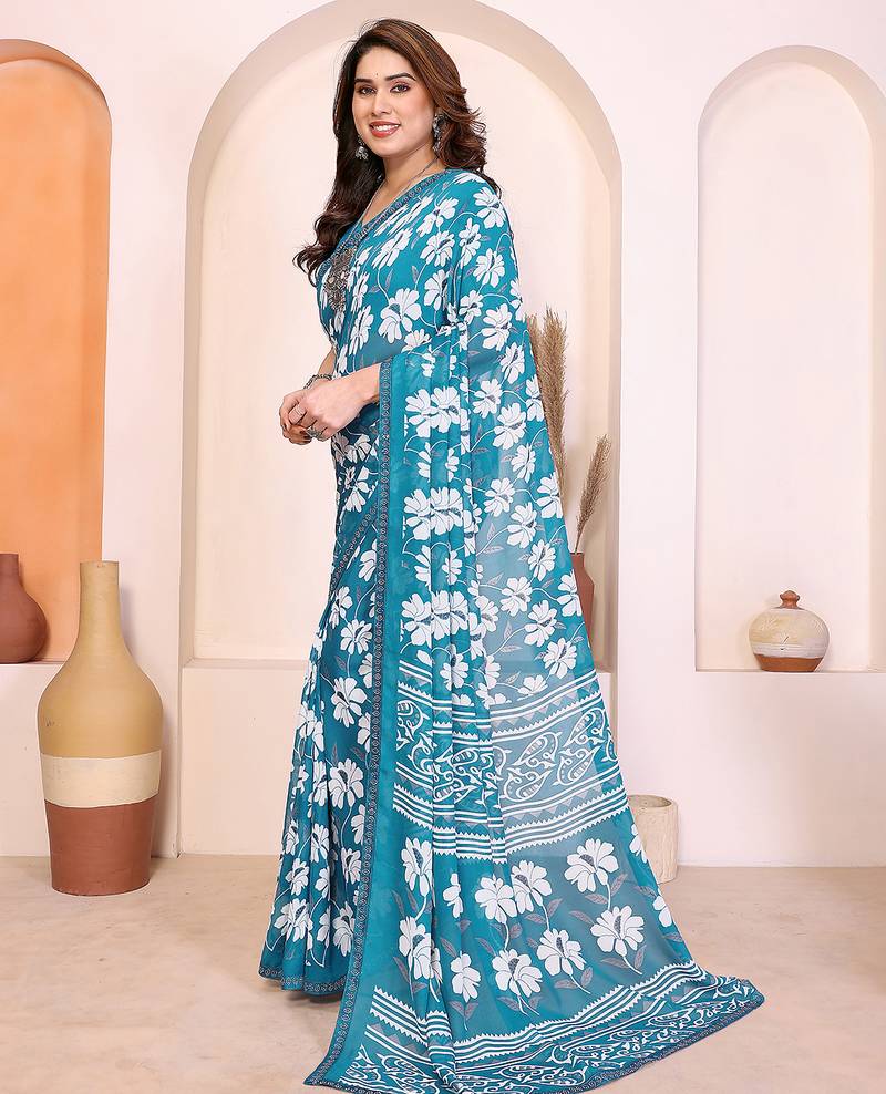 | Product Name | Blue Floral Georgette Saree With Lace Border & Blouse Piece | |