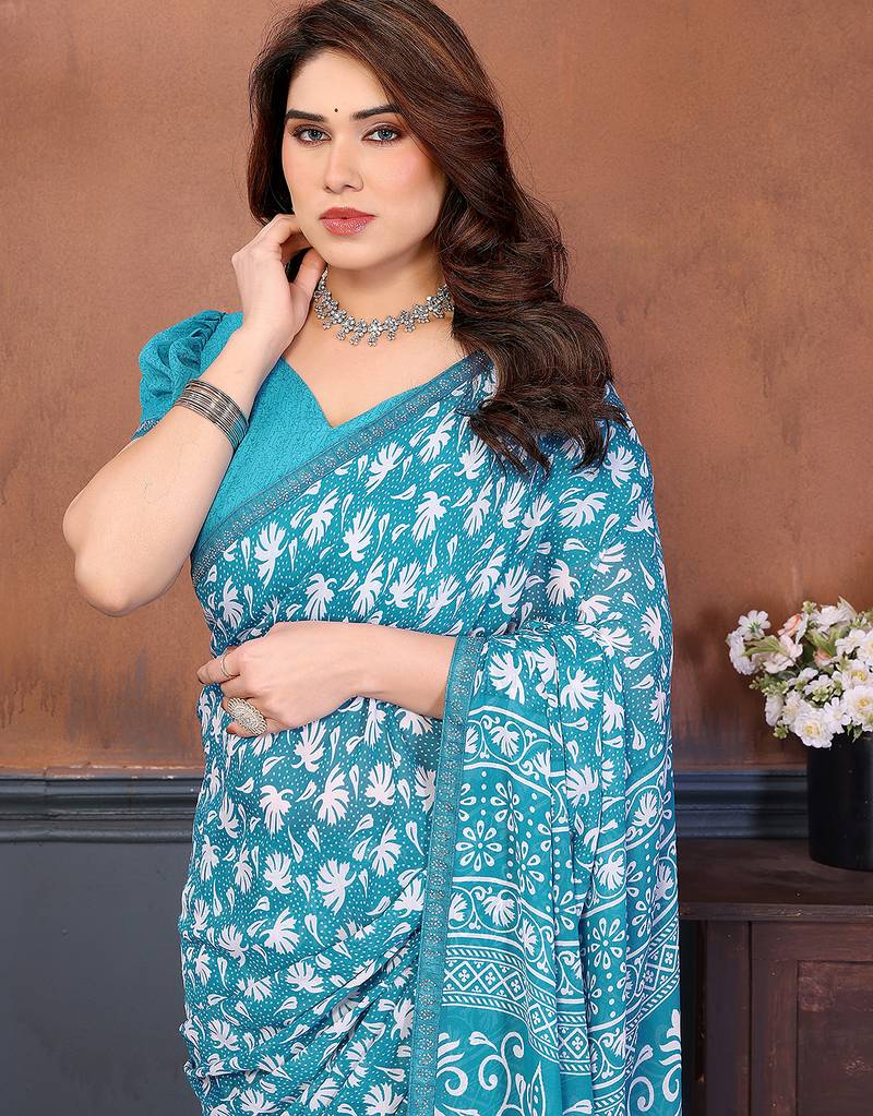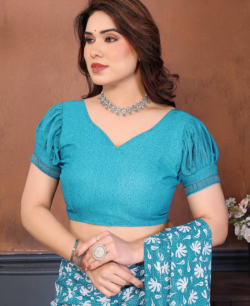| Product Name | Blue Floral Georgette Saree With Lace Border & Blouse Piece | |