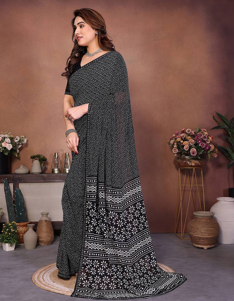| Product Name | Black Floral Georgette Saree With Lace Border & Blouse Piece | |