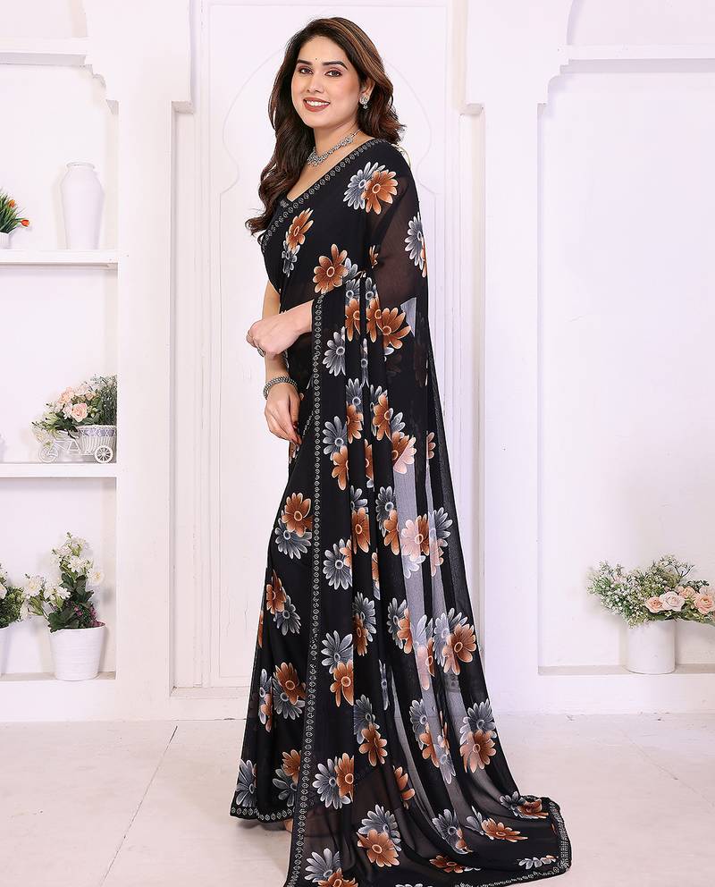 | Product Name | Black Floral Georgette Saree With Lace Border & Blouse Piece | |