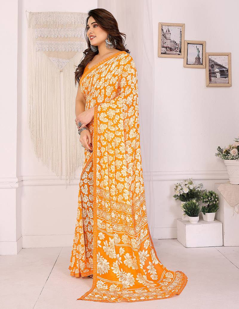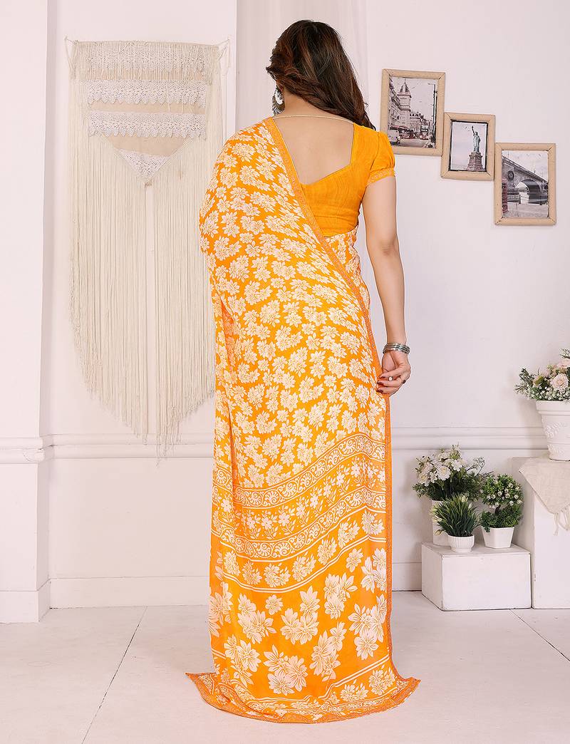 | Product Name | Yellow Floral Georgette Saree With Lace Border & Blouse Piece | |