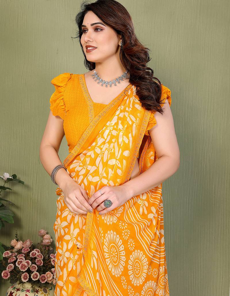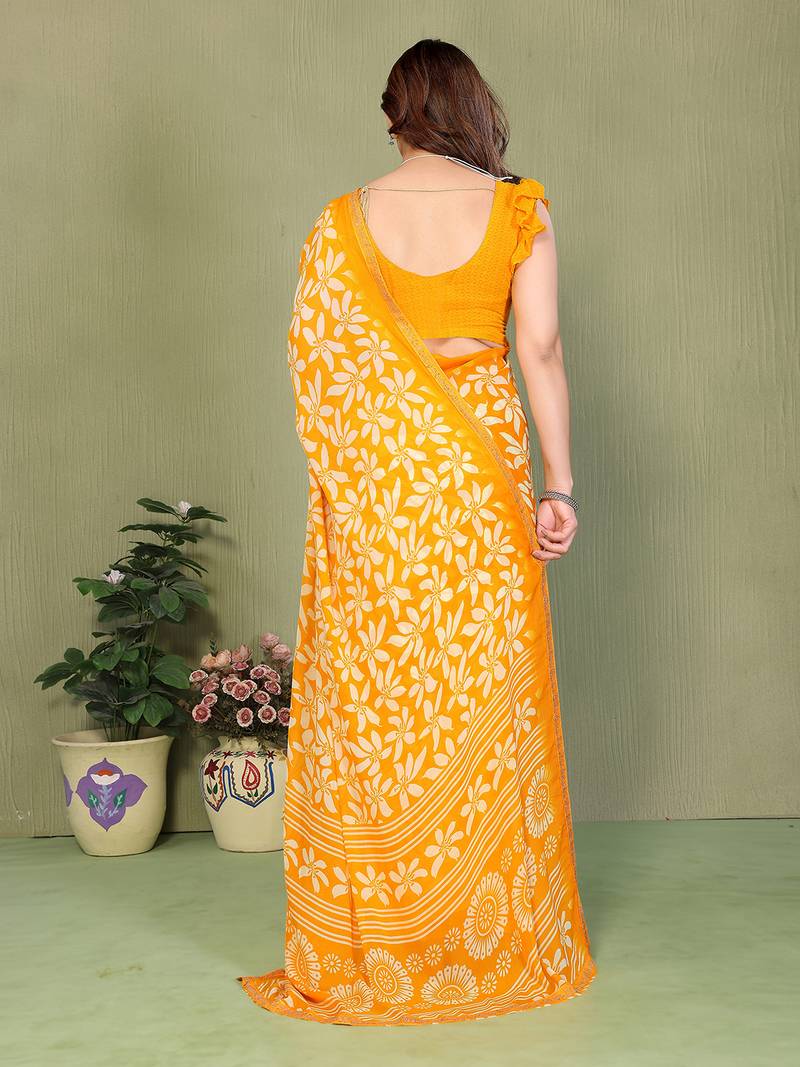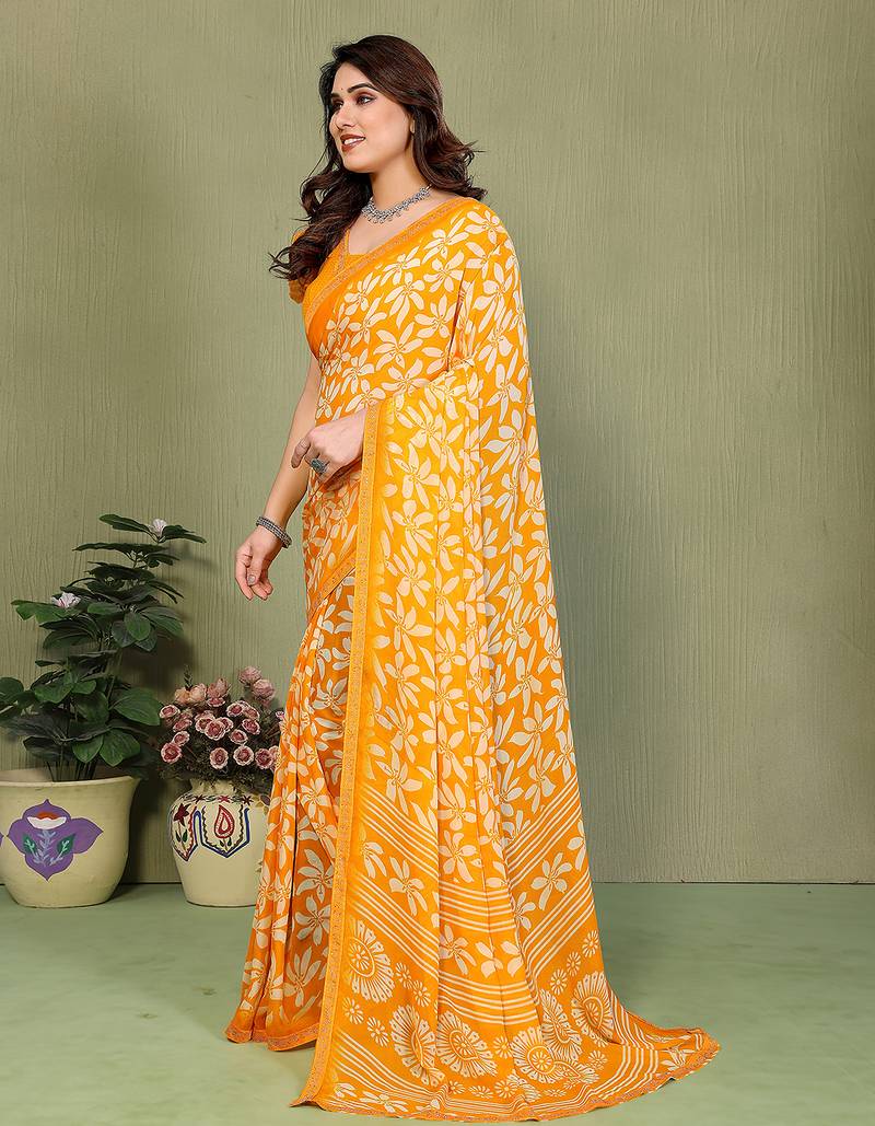 Product Name  Orange Floral Georgette Saree With Lace Border & Blouse Piece
