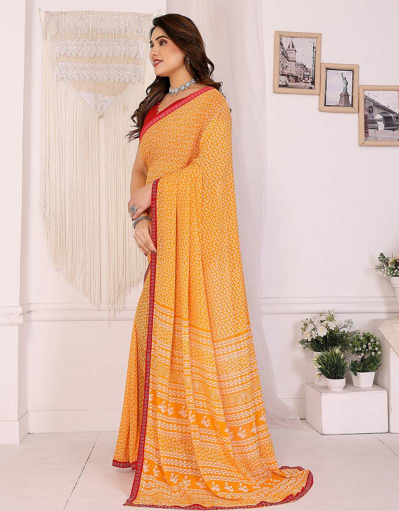 Product Name  Yellow Floral Georgette Saree With Lace Border & Blouse Piece