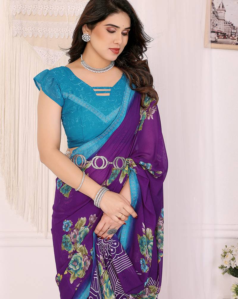| Product Name | Purple Floral Georgette Saree With Lace Border & Blouse Piece | |