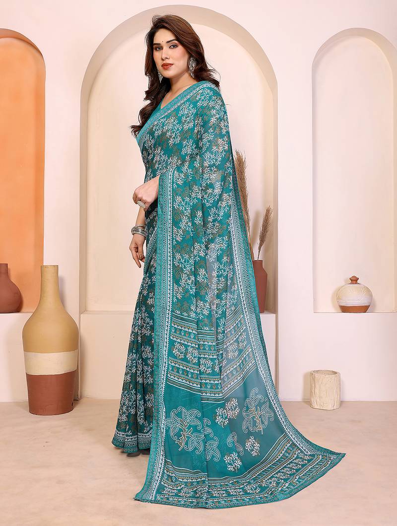 | Product Name | Blue Floral Georgette Saree With Lace Border & Blouse Piece | |