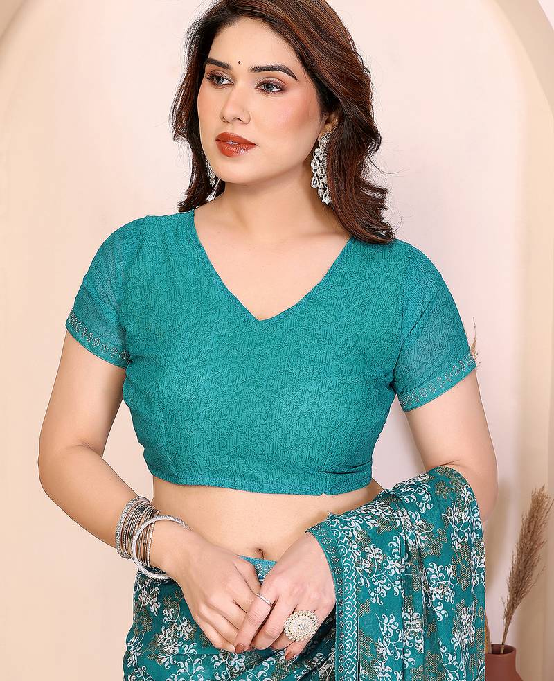 | Product Description | Elevate Your Ethnic Style With This Elegant Georgette Floral Saree Designed For Graceful Charm. Crafted From Lightweight Georgette Fabric, It Features A Beautiful Floral Pattern That Adds A Soft, Feminine Touch. The Delicate Lace Border Enhances Its Sophisticated Appeal. Paired With A Matching Blouse Piece, This Saree Is Perfect For Festive Occasions, Parties, And Special Gatherings, Offering Comfort With Timeless Elegance. |