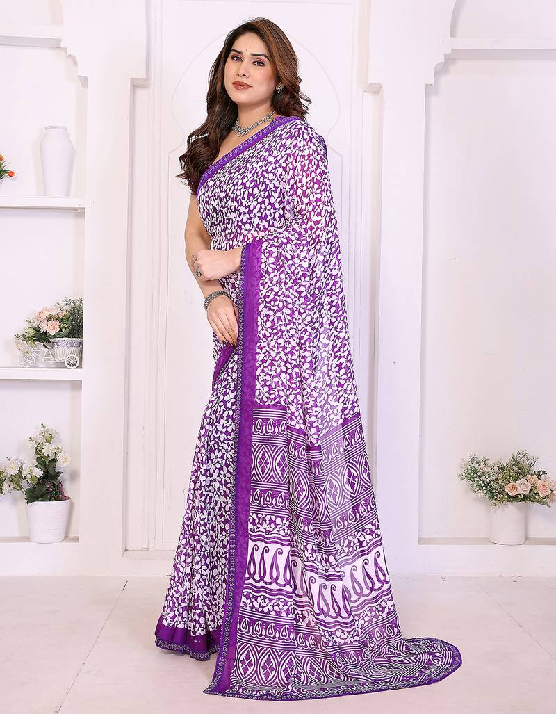 | Product Name | Purple Floral Georgette Saree With Lace Border & Blouse Piece | |