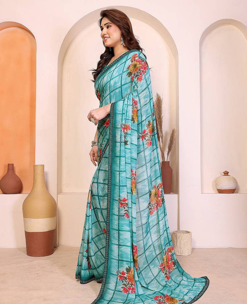 | Product Name | Blue Floral Georgette Saree With Lace Border & Blouse Piece | |