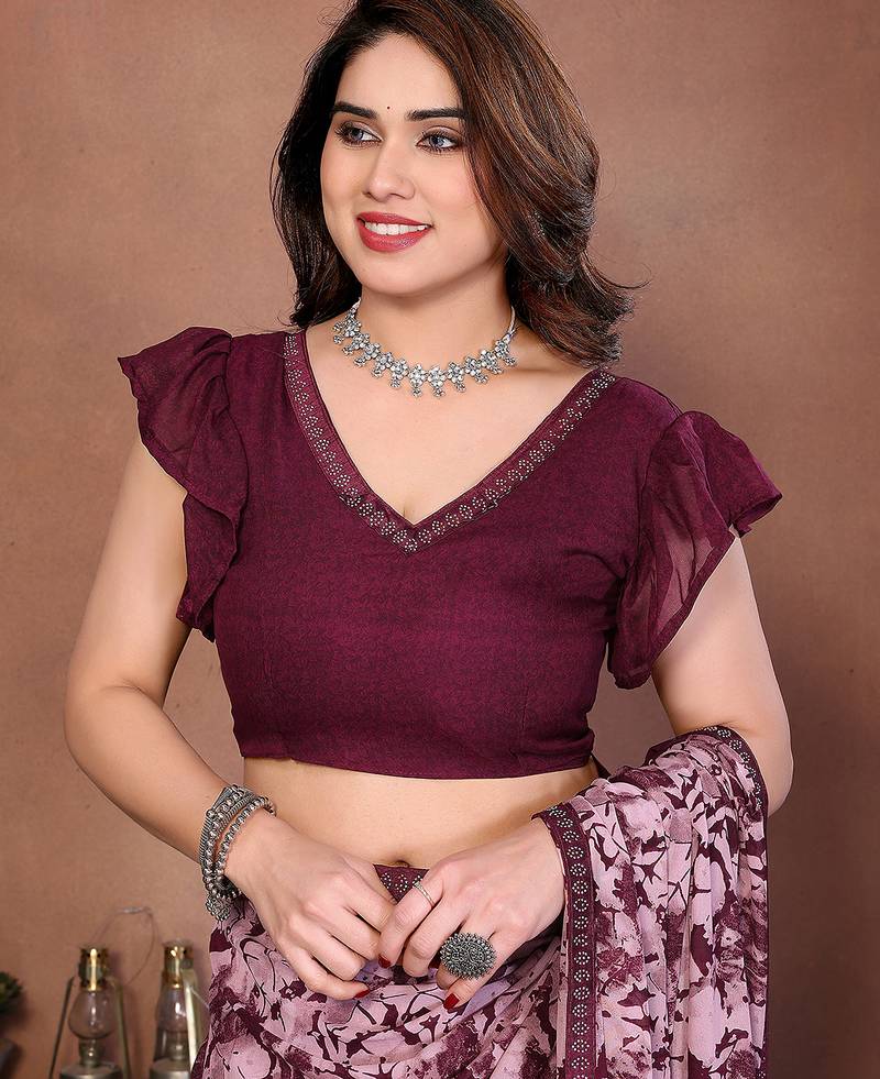 | Product Name | Magenta Geometric Print Georgette Saree With Lace Border & Blouse Piece | |