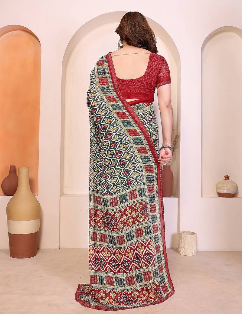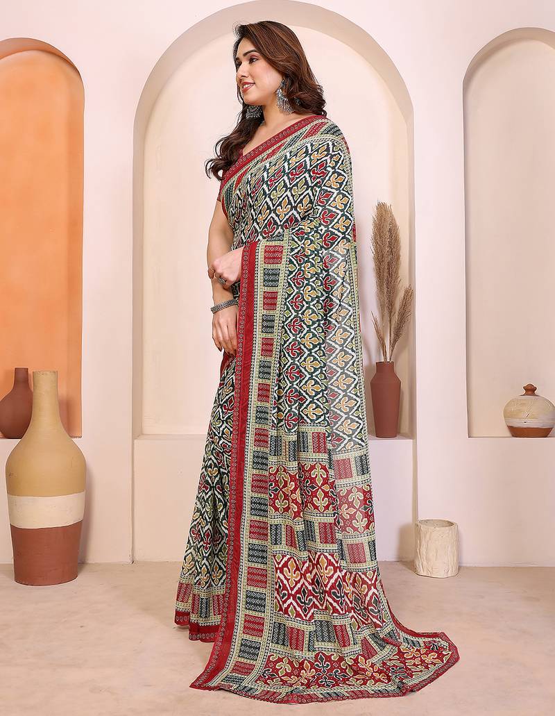| Product Name | Green Geometric Print Georgette Saree With Lace Border & Blouse Piece | |