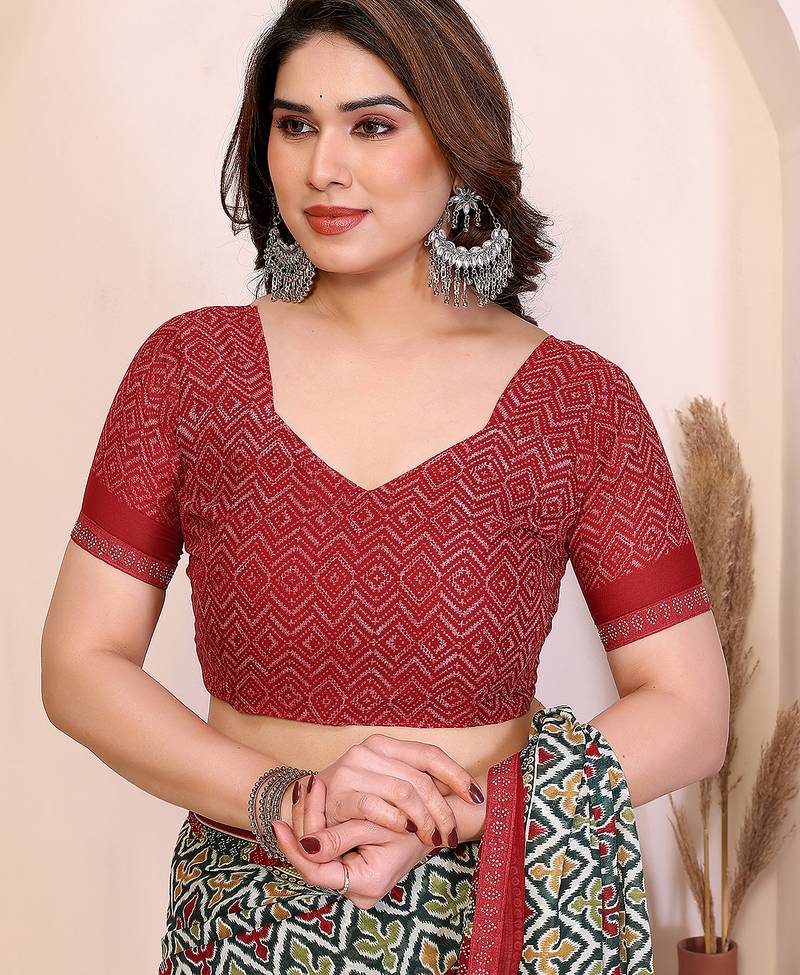| Product Description | Refresh Your Ethnic Collection With This Stylish Georgette Geometric Saree Designed For Modern Elegance. Crafted From Lightweight And Flowy Georgette Fabric, It Features An Eye Catching Geometric Pattern That Adds A Contemporary Touch. The Delicate Lace Border Enhances Its Graceful Appeal. Paired With A Matching Blouse Piece, This Saree Is Perfect For Festive Events, Office Wear, And Special Occasions, Offering Comfort With Refined Sophistication. |