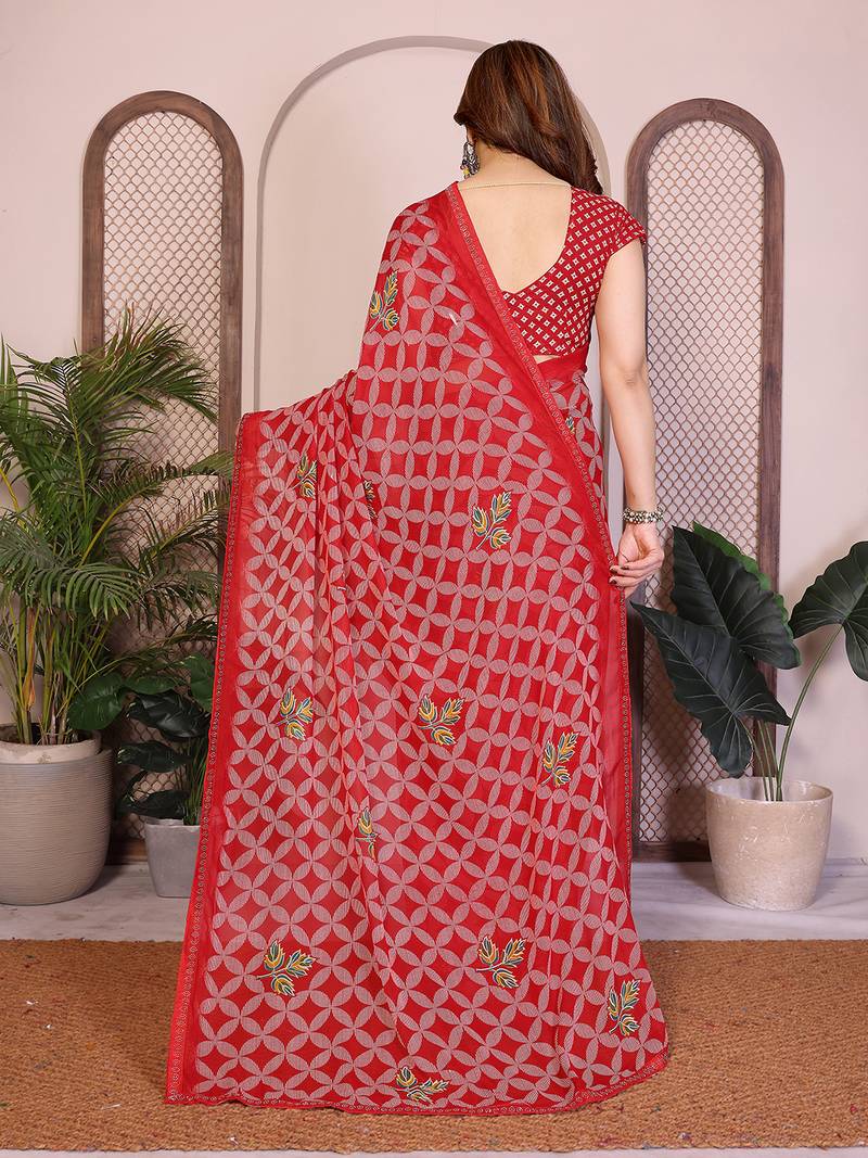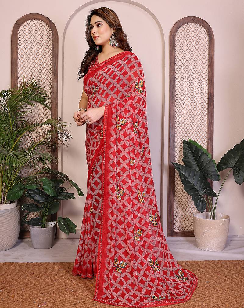 | Product Name | Red Geometric Print Georgette Saree With Lace Border & Blouse Piece | |