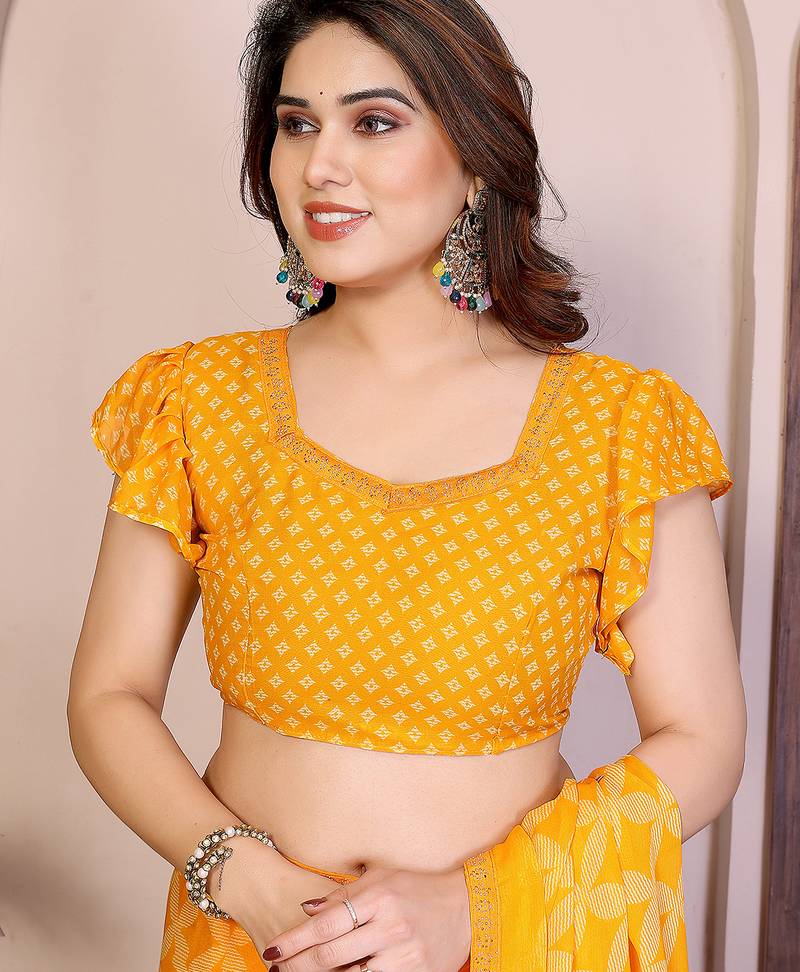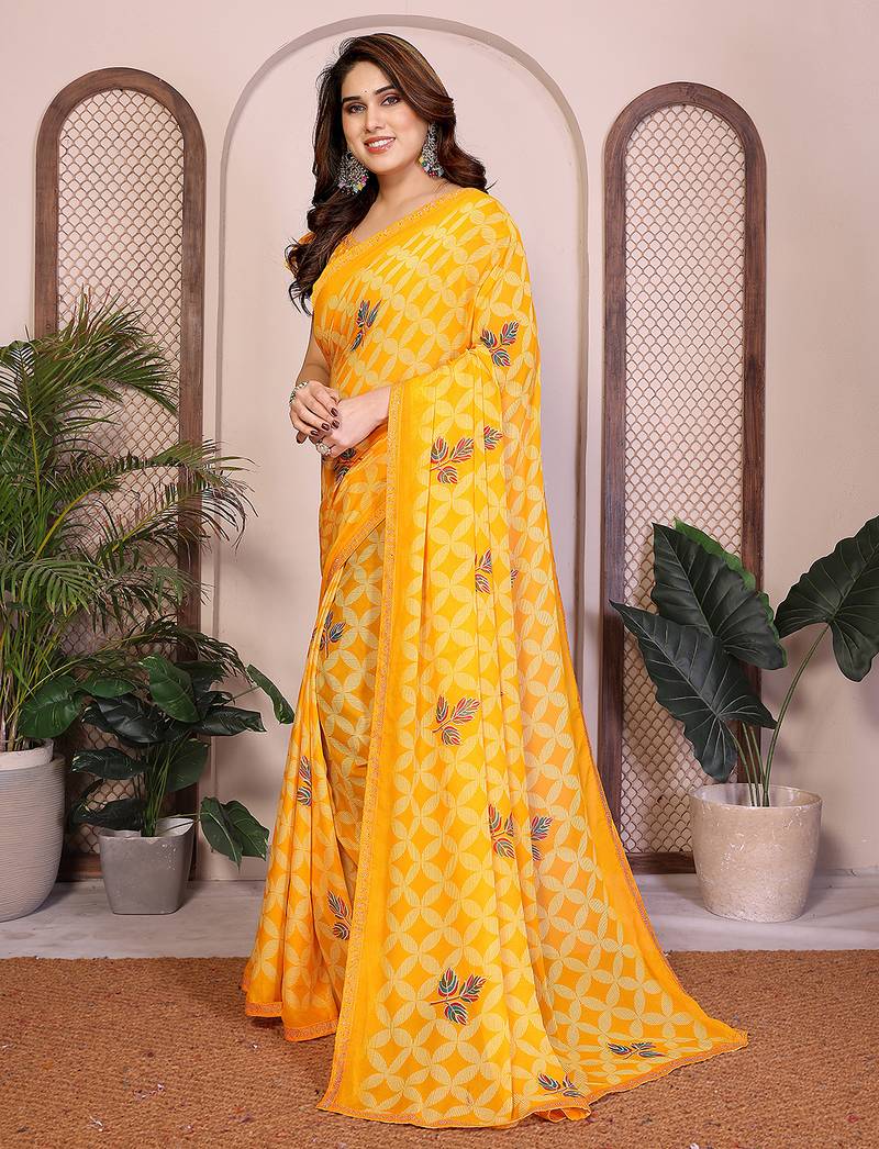 | Product Name | Yellow Geometric Print Georgette Saree With Lace Border & Blouse Piece | |