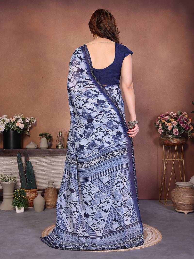 Product Name Blue Geometric Print Georgette Saree With Lace Border & Blouse Piece