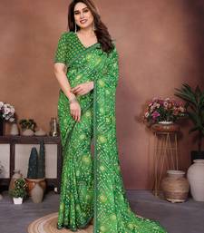 green printed georgette saree with lace border & blouse piece