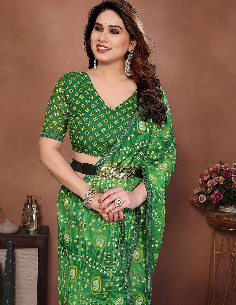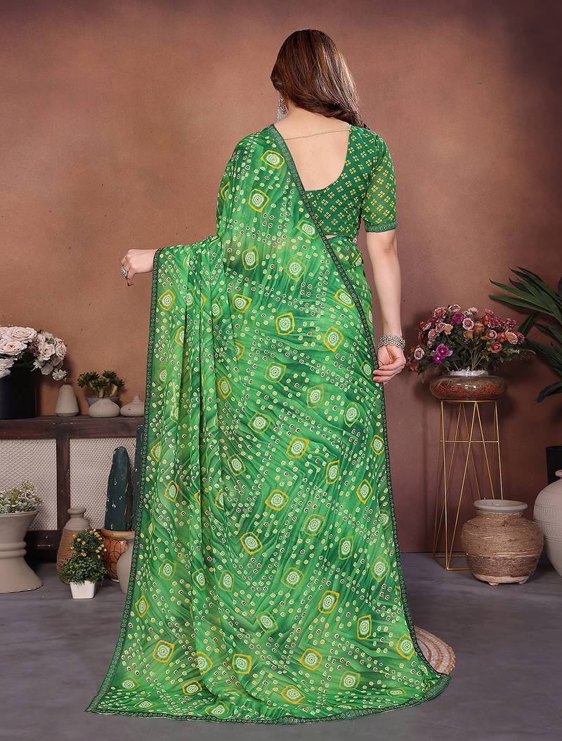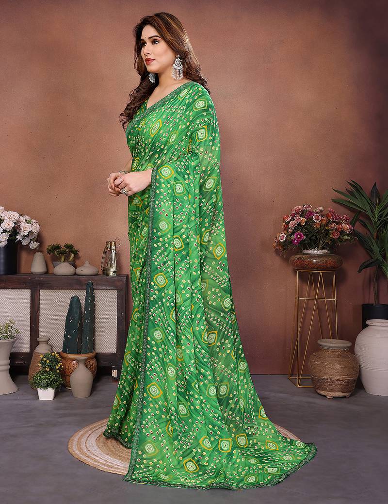 Product Name Green Printed Georgette Saree With Lace Border & Blouse Piece
