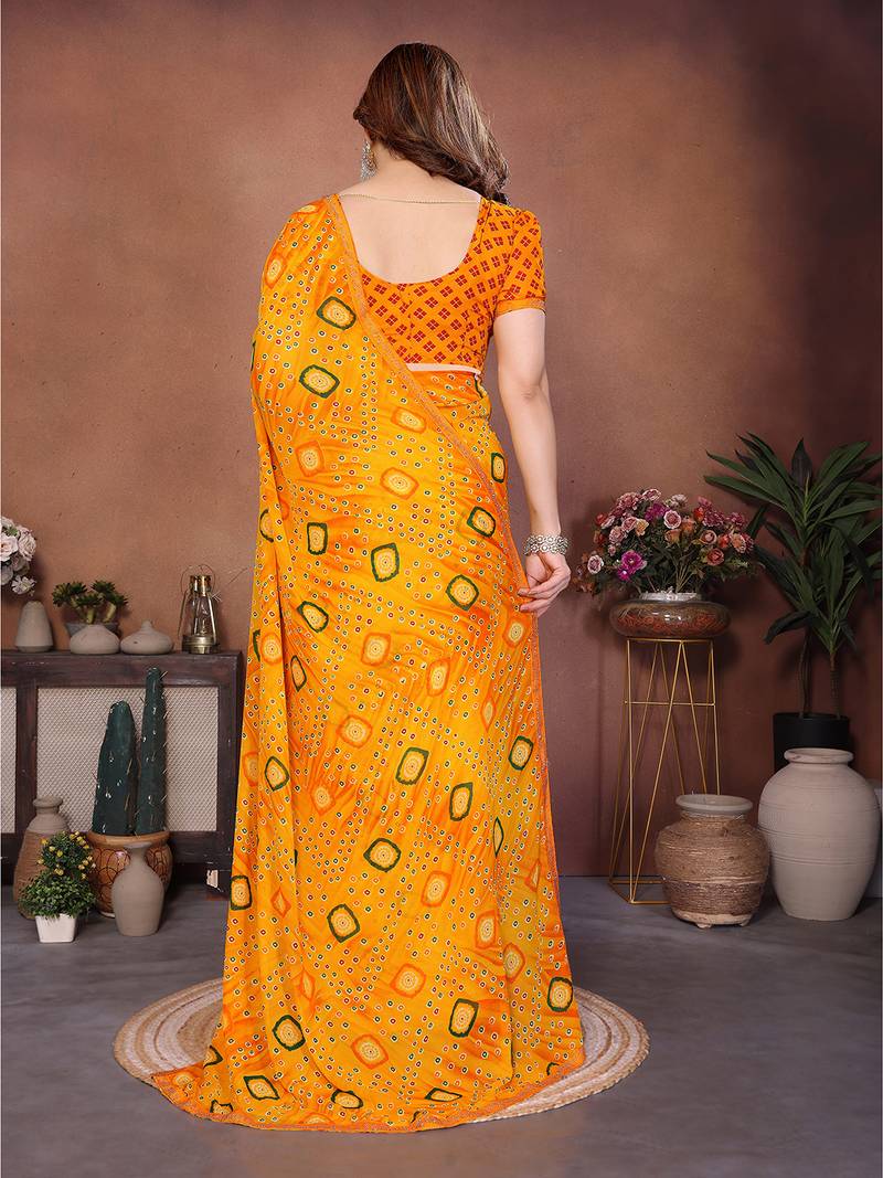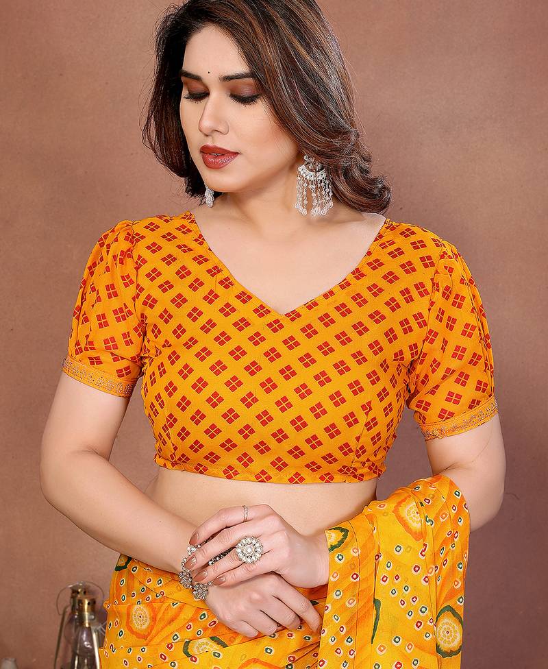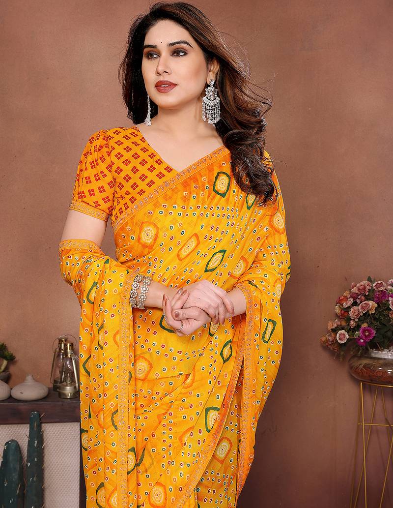 | Product Name | Yellow Printed Georgette Saree With Lace Border & Blouse Piece | |