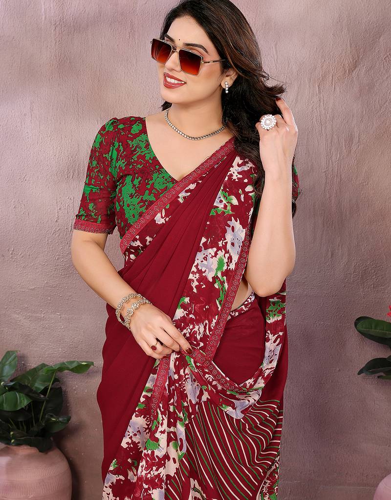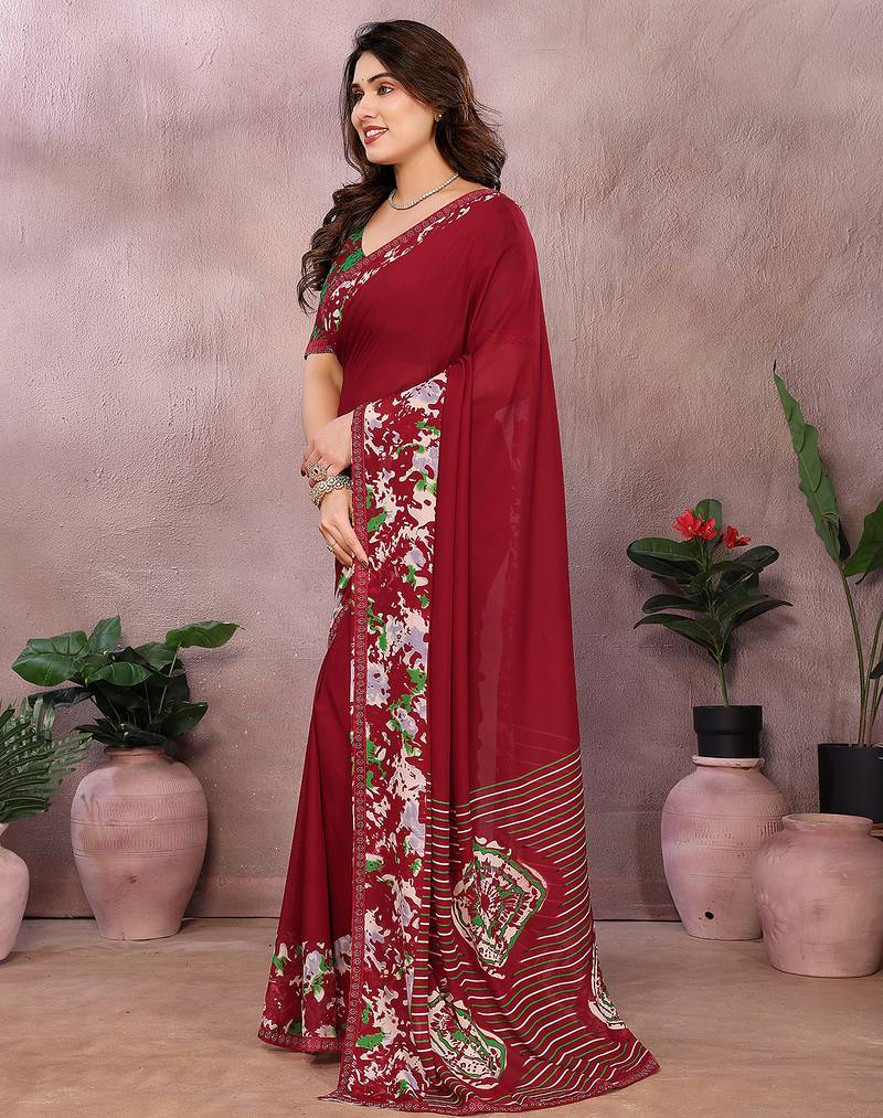 Saree : Color- Maroon / Fabric- Georgette