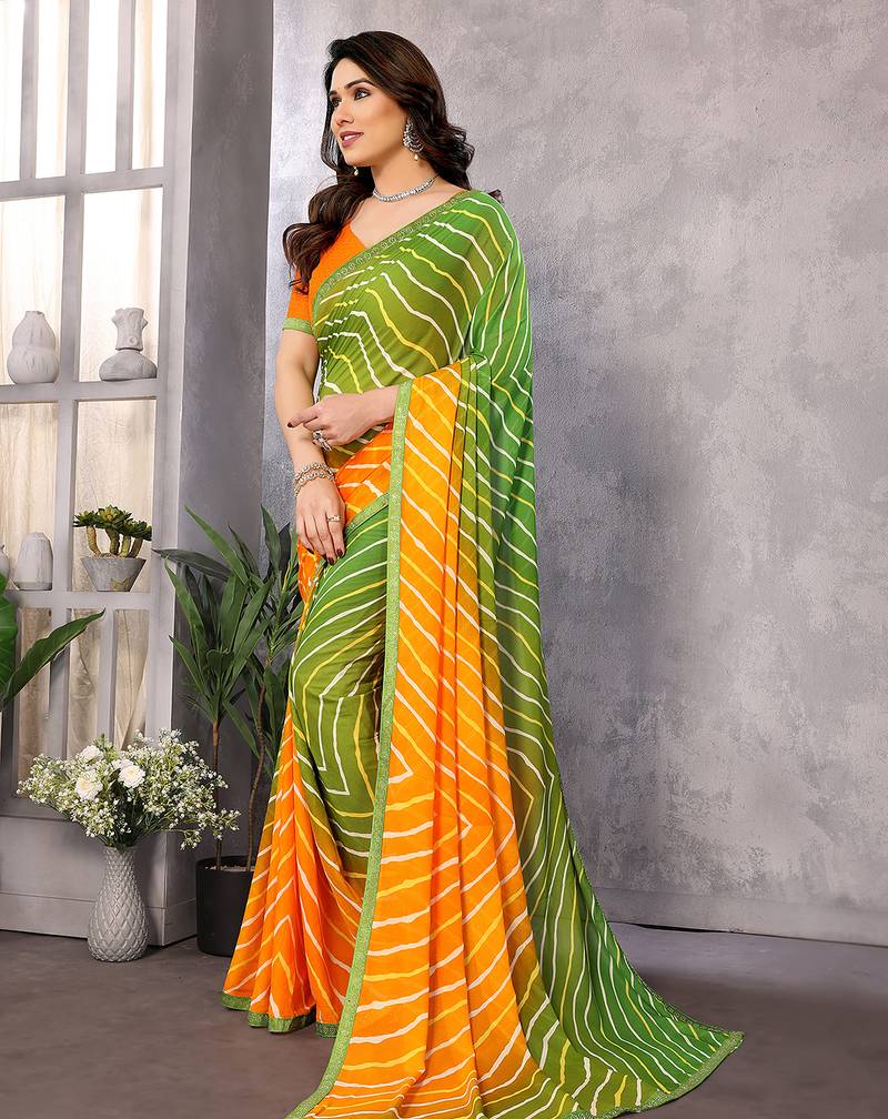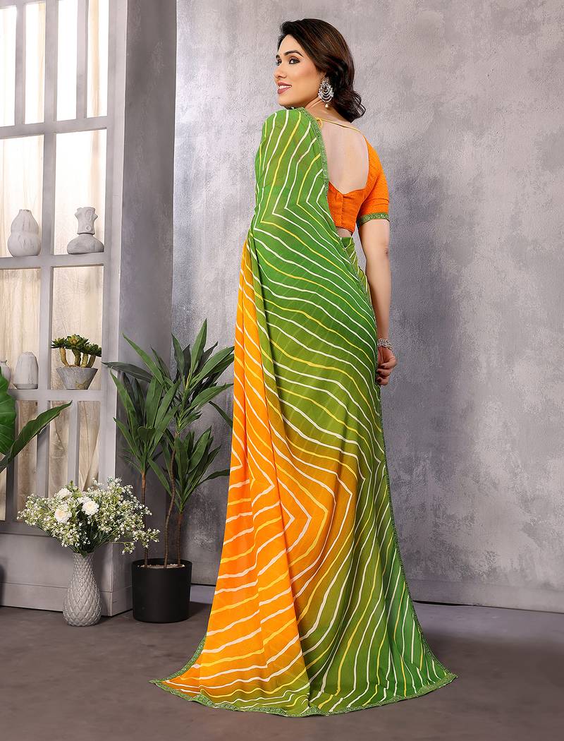 Product Name Green Striped Georgette Saree With Lace Border & Blouse Piece