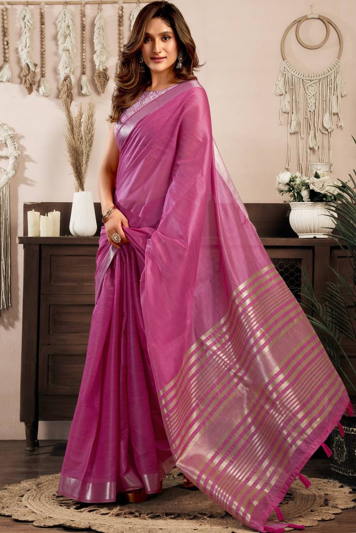 Embellish Elevate Your Ethnic Wardrobe With This Beautiful Khadi Cotton Saree Featuring An Elegant Jhallar Border And Paired With A Rich Brocade Blouse.