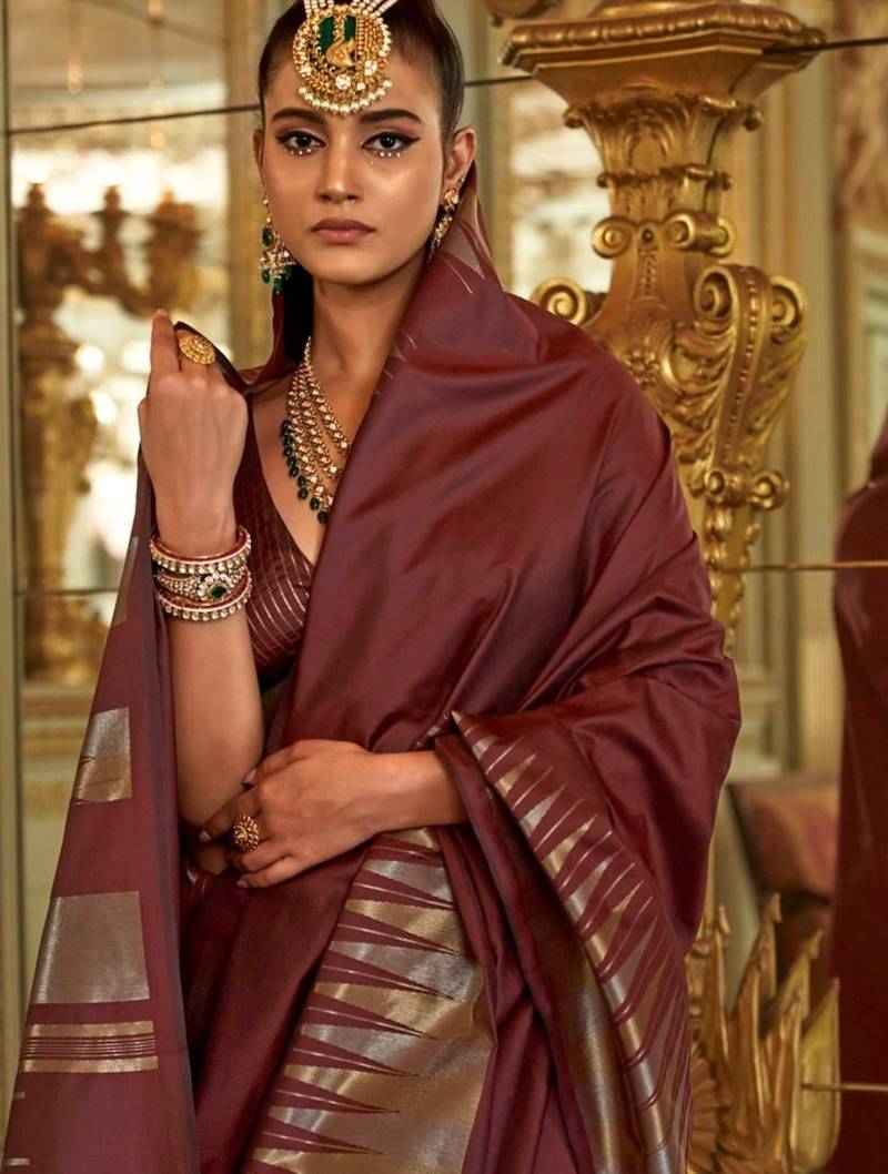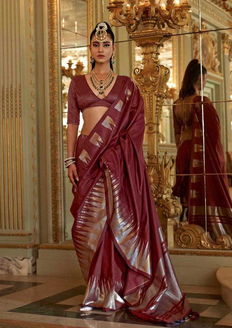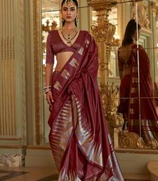 Maroon premium pv super fine soft silk saree with double zari weaving & hand deco finish party & festive wear