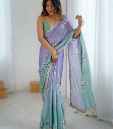 | Product Name | Purple Satin Chiffon Hand Printed Saree With Sequence & Dori Embroidery Work | Designer Party Wear Saree | |