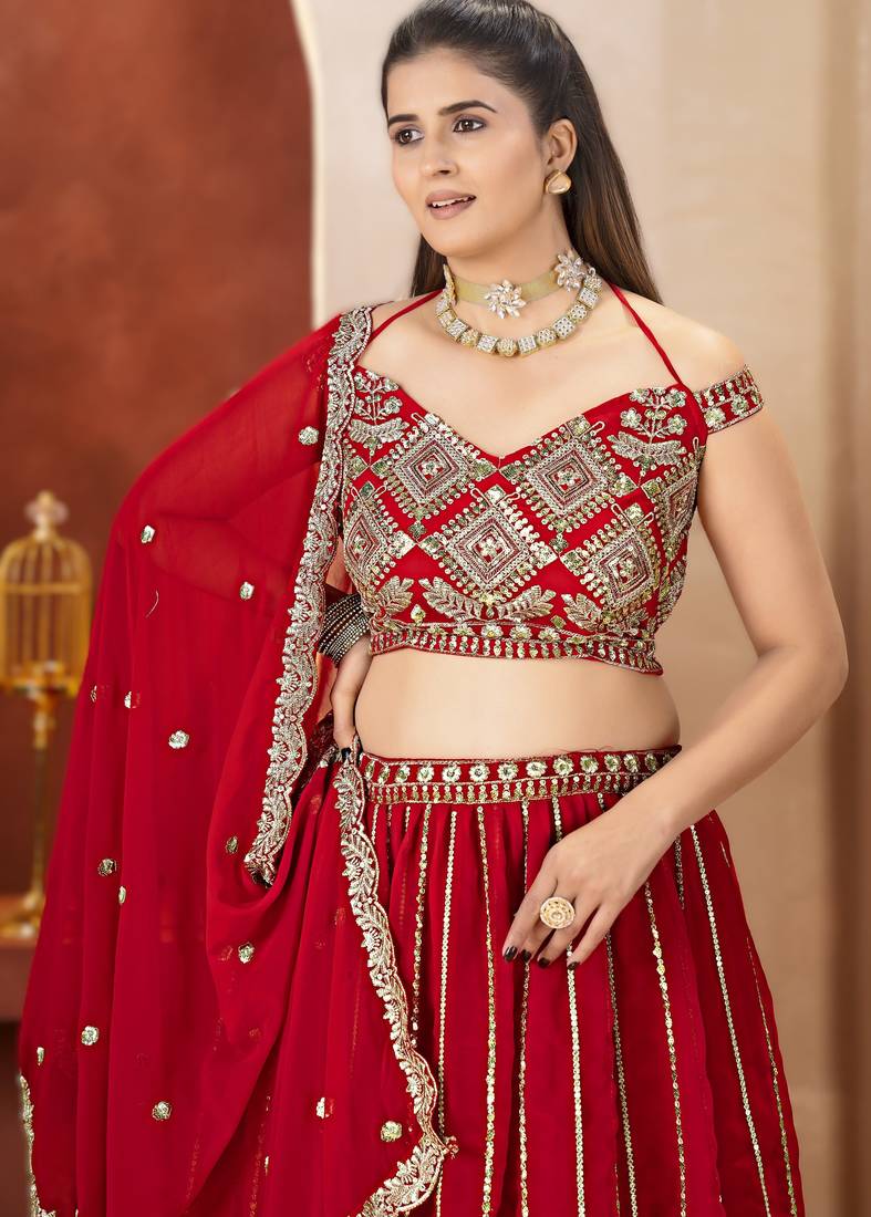 | Product Name | Royal Red Faux Georgette Lehenga With Sequins | |