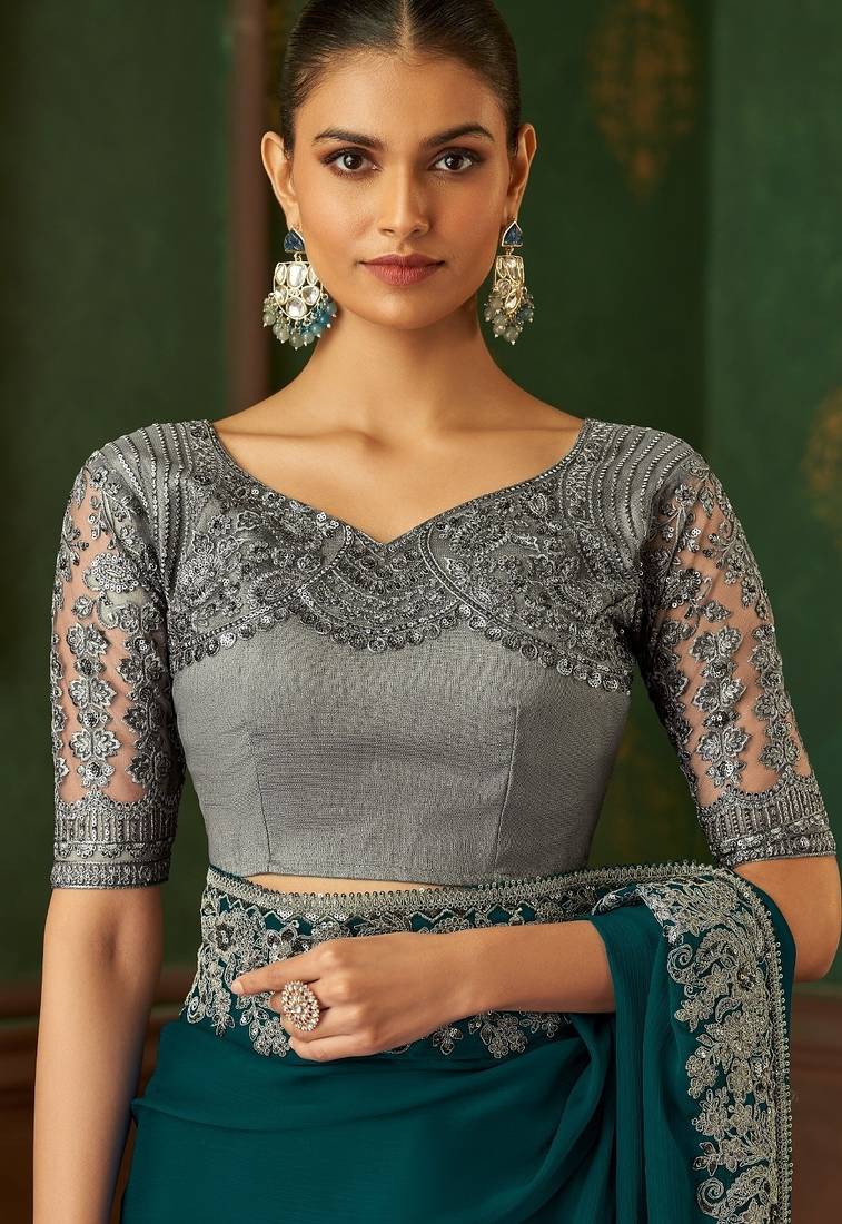Product Name | Seagreen Heavy Chiffon Silk Blend Saree With Embroidery With Unstitched Blouse | |
