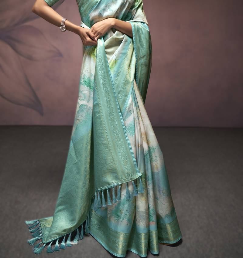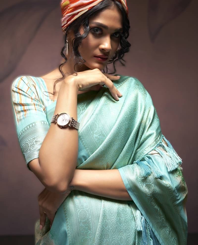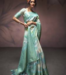 Sky blue premium handloom art silk sarees luxurious traditional weaving