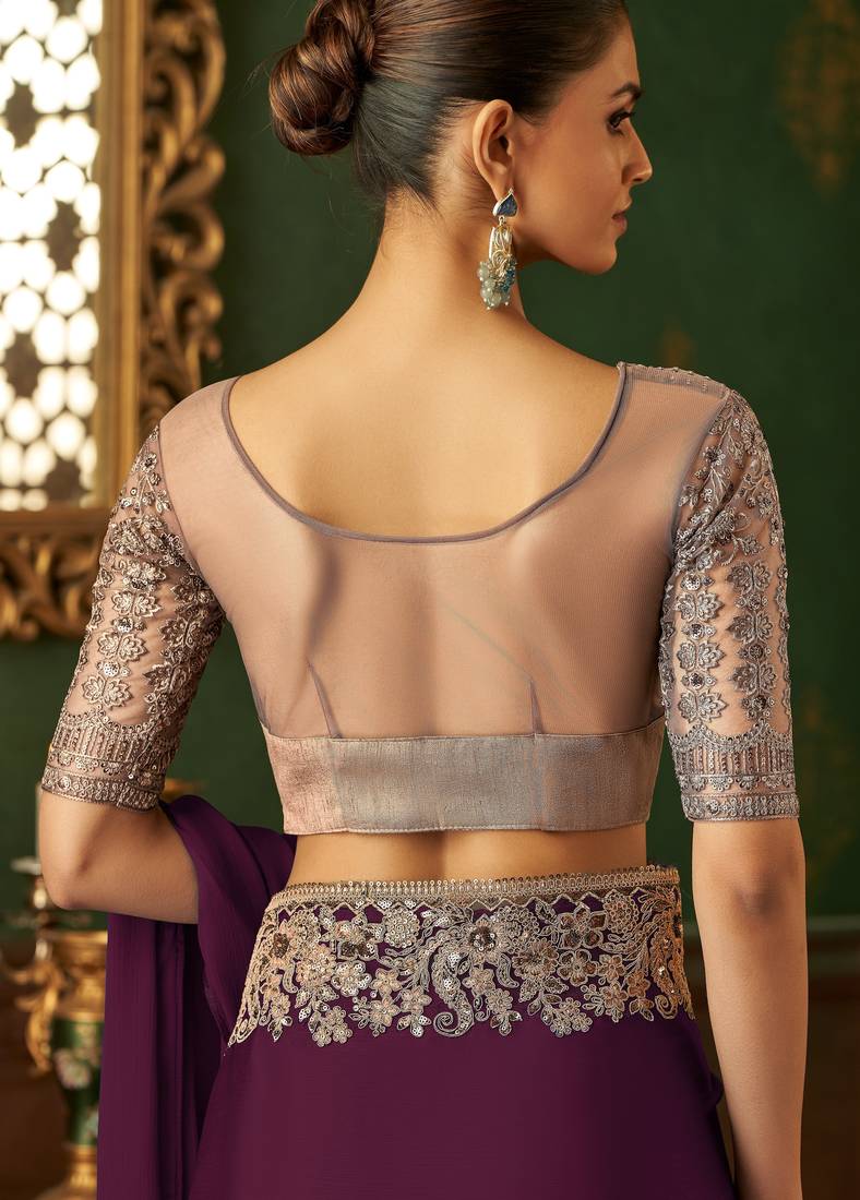 Product Name | Wine Heavy Chiffon Silk Blend Saree With Embroidery With Unstitched Blouse | |