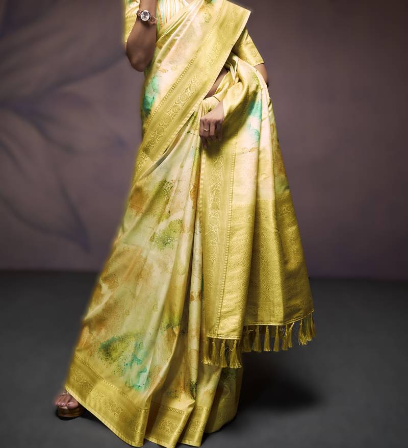 Yellow premium handloom art silk sarees luxurious traditional weaving