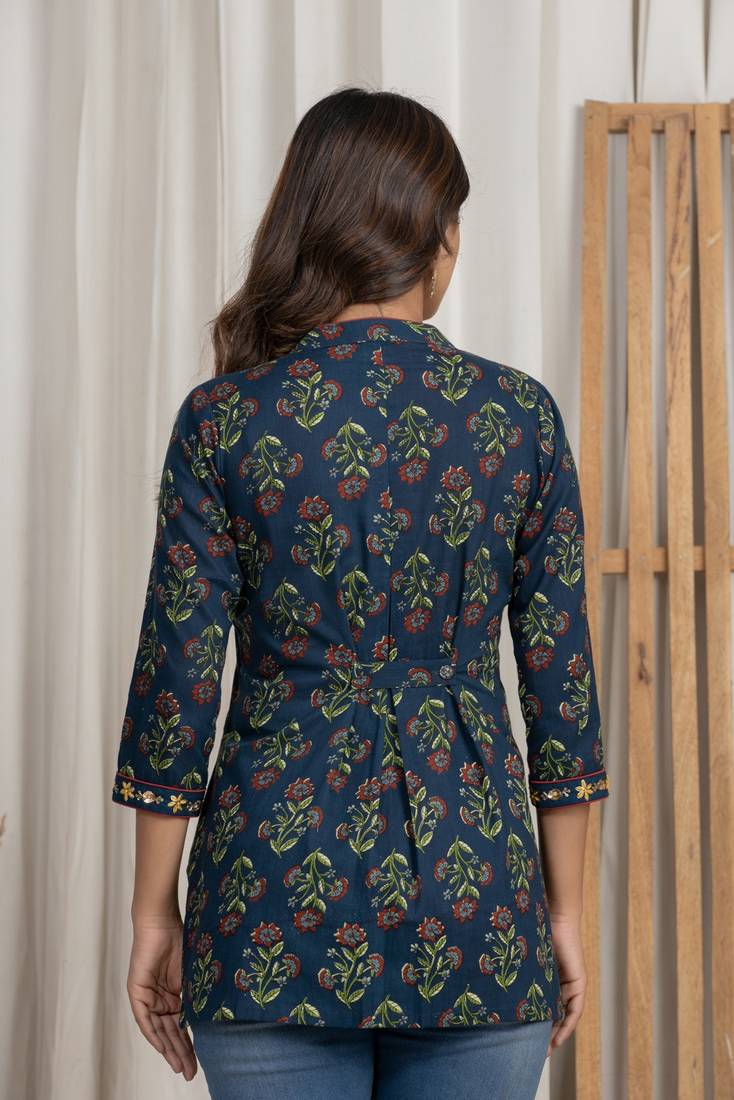5. Blue Embroidered Short Kurti