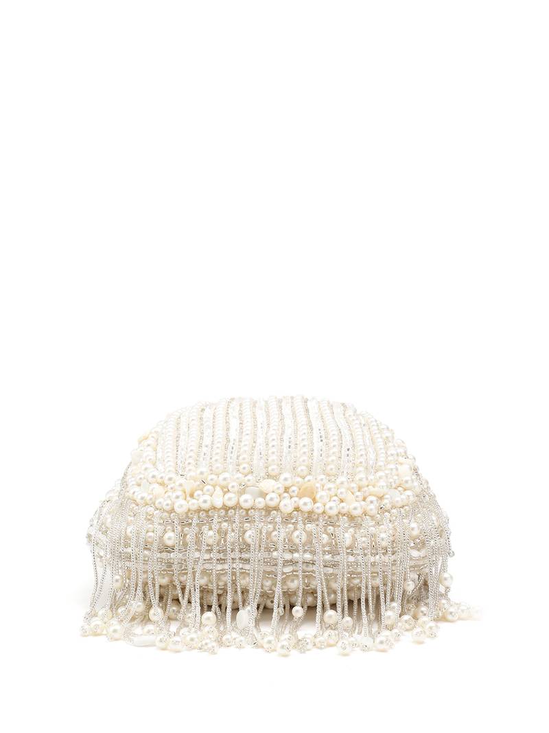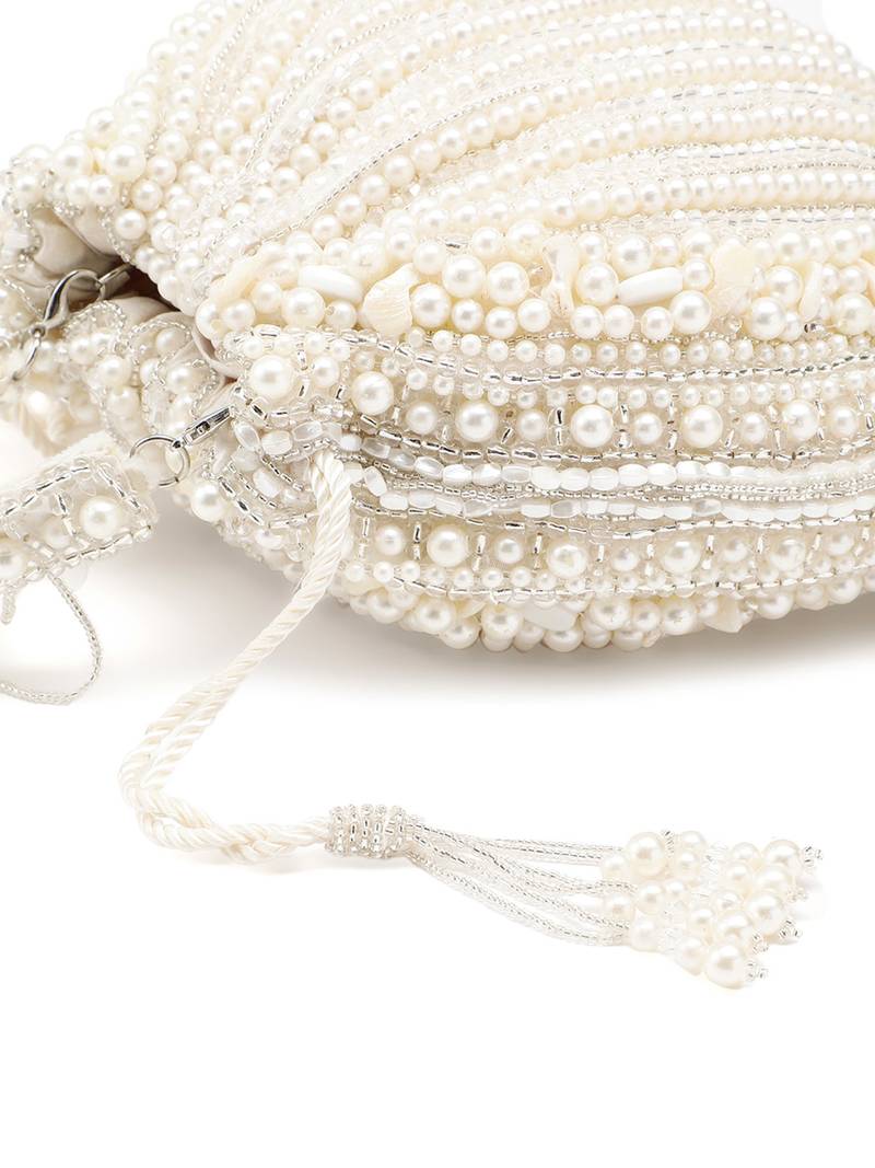 Opal Thread Crystal White Pearl Beaded Faux Silk Potli