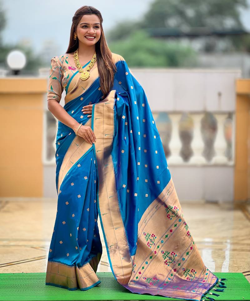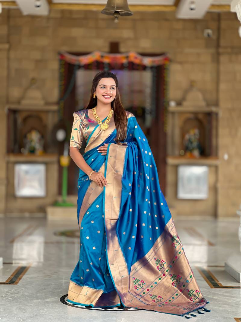 | Product Name | Soft Paithani Silk Saree With Zari Weawing Motifs Design And Meenakari Weawing Rich Pallu | |