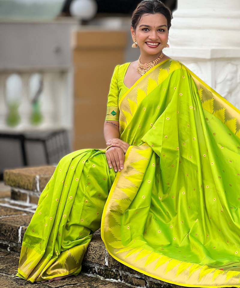 | Product Name | Soft Paithani Silk Saree With Zari Weawing Motifs Design And Meenakari Weawing Rich Pallu | |