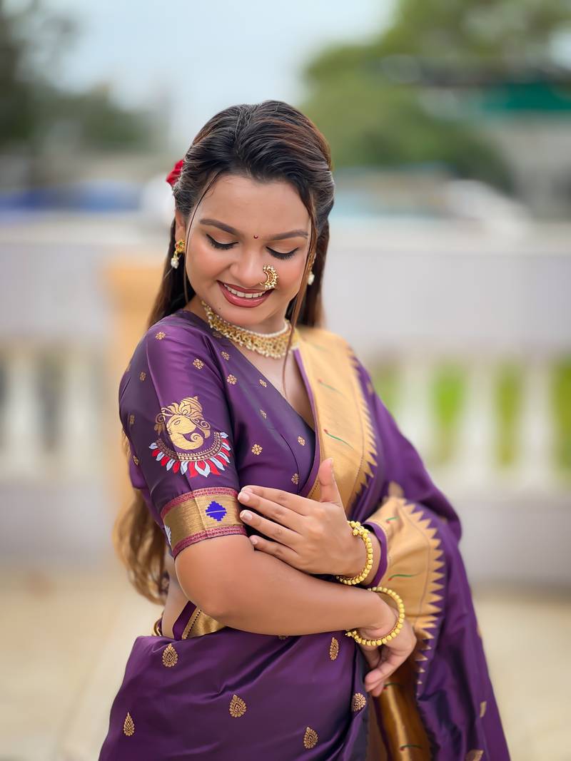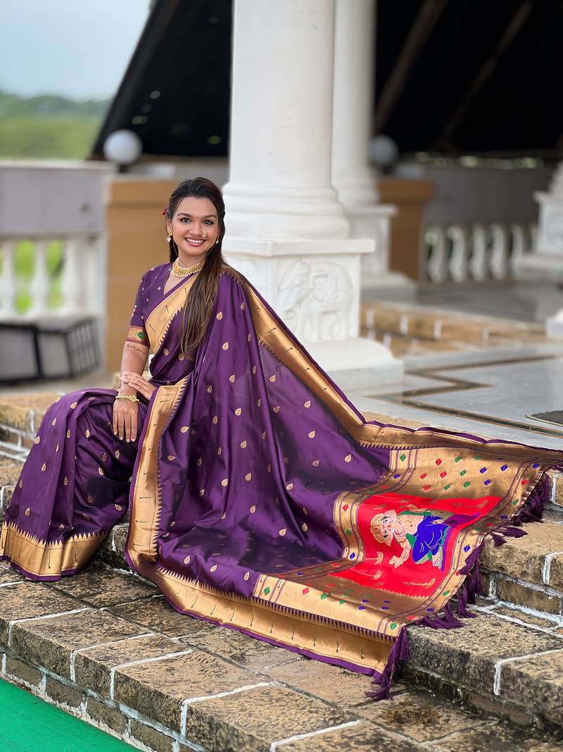 Saree : Color- Wine / Fabric- Paithani Silk