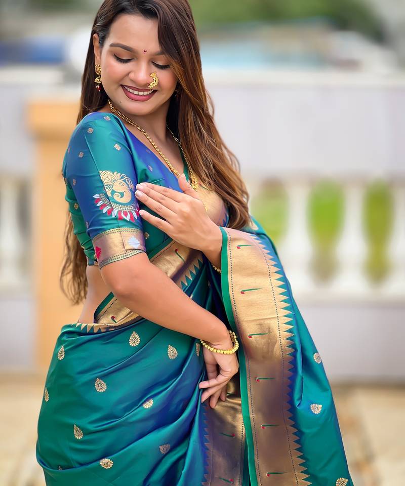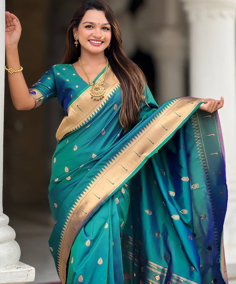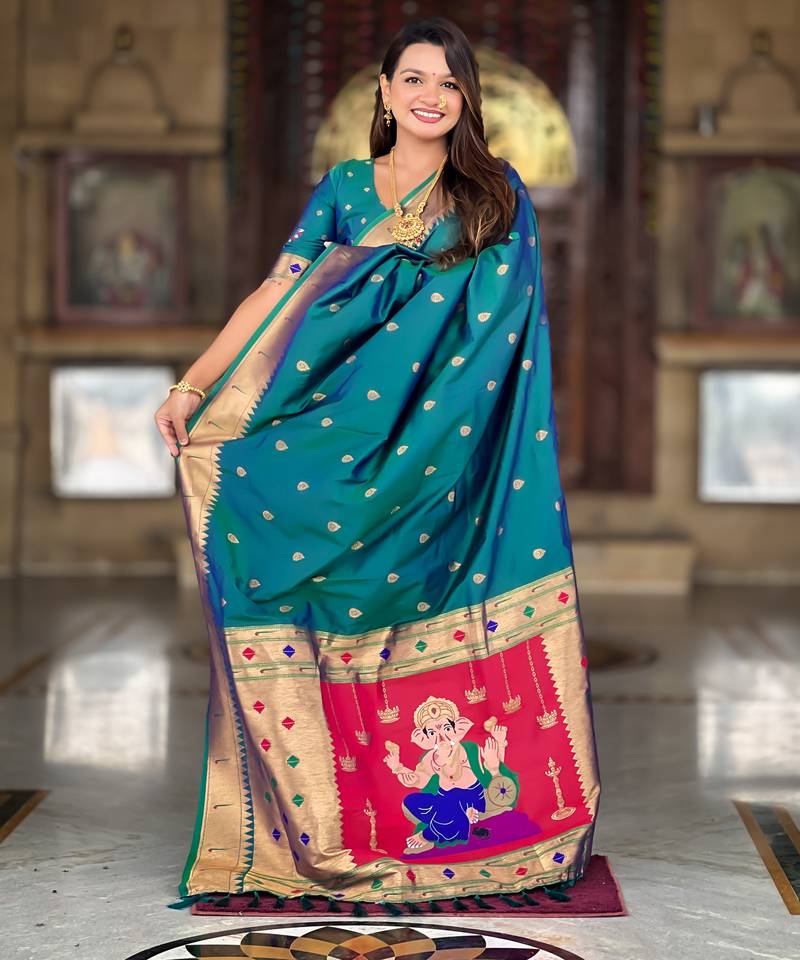 | • | Saree | : | Color- Teal / Fabric- Paithani Silk |
